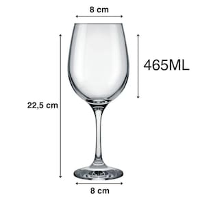 Cada taça possui capacidade de 465ml, proporcionando o tamanho ideal para desfrutar de suas bebidas favoritas. Seu design clássico com bojo no formato uva combina perfeitamente com qualquer composição de mesa, trazendo um toque de requinte para suas ocasiões especiais.