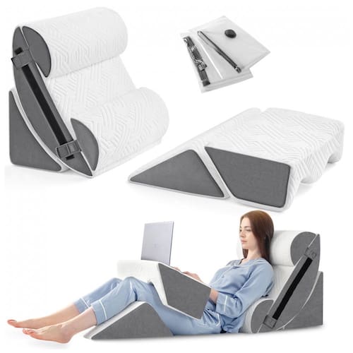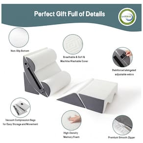 Experimente o máximo em conforto e suporte com o conjunto de travesseiros ortopédicos de cunha para cama plus size. Este produto se adapta ao formato e altura do seu corpo para aliviar dores nos joelhos, pernas, ombros e pescoço, ao mesmo tempo que melhora a circulação. A almofada cirúrgica Yojoker oferece 6 partes para combinações personalizáveis, fornecendo mais de 16 maneiras de apoiar uma postura confortável para leitura, sono e gravidez. As almofadas de perna com design exclusivo podem ser usadas como mesa. A almofada de cunha para cama pós cirurgia é feita com espuma viscoelástica que oferece amortecimento personalizado para suporte ideal, com uma fronha respirável, macia e lavável à máquina para mantê lo confortável a noite toda. Nós nos esforçamos ao máximo ao incluir dois sacos de armazenamento a vácuo de bônus, tornando a organização muito fácil. Este produto é perfeito para recuperação pós cirúrgica ou alívio da dor, melhorando a qualidade do sono e oferecendo alívio do refluxo ácido ou DRGE. Vale ressaltar que este travesseiro em cunha para refluxo ácido não é um dispositivo médico e não deve substituir aconselhamento ou tratamento médico. Priorize sua saúde e consulte um profissional de saúde se necessário.