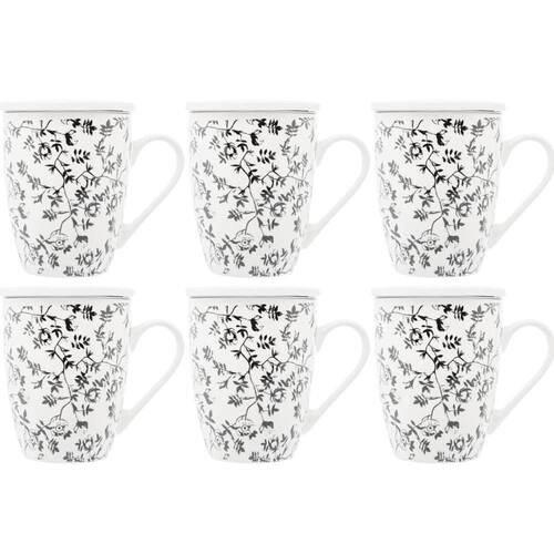 Conjunto de Xícaras de Chá 310ml 6 Canecas de Porcelana com Tampa e Filtro Tiny Flowers Lyor.