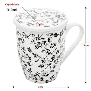 A combinação de estética atraente e utilidade tornam essas canecas escolhas versáteis para apreciadores de chá que valorizam tanto o estilo quanto a praticidade em suas experiências de degustação. Elas se destacam como uma adição encantadora à sua coleção de utensílios de chá e podem ser excelentes opções de presente. A tonalidade "Super White" confere um aspecto clássico e moderno às canecas com filtro de chá, adicionando um toque de sofisticação à sua mesa. A decoração delicada de "Tiny Flowers" imprime um charme adicional, acrescentando um toque de delicadeza ao design. As tampas e os filtros são características práticas que elevam a funcionalidade das canecas. As tampas ajudam a manter a temperatura da bebida por mais tempo, além de preservar os aromas. O infusor é útil para preparar chás soltos, permitindo que você infunda suas folhas de chá favoritas diretamente nas canecas de porcelana, sem a necessidade de uma peneira separada.