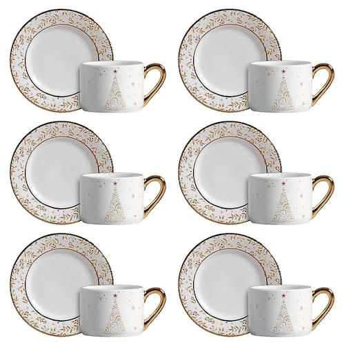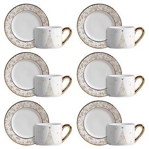 Conjunto de 6 Xícaras de Chá com Pires Christmas Lights de Cerâmica 200ml - Scalla