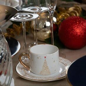 Deixe sua mesa ainda mais especial com nosso Conjunto de 6 Xícaras de Chá com Pires Christmas Lights de Cerâmica de 200ml da Scalla!