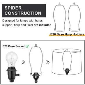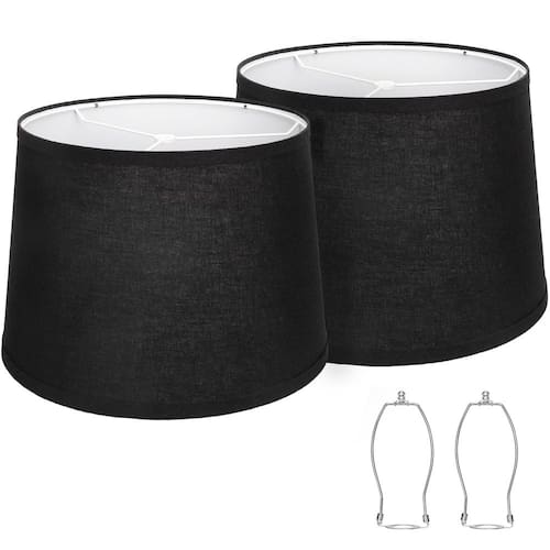 Pacote com 2 abajures de tecido preto - Dimensão: Diâmetro superior: 29,5 cm, diâmetro inferior: 32 cm, altura: 25 cm, diâmetro da rosca do parafuso: 1,1 cm. Tamanho médio adequado para a maioria dos candeeiros de mesa e luminárias de chão. Por favor, verifique o tamanho da persiana cuidadosamente para garantir que eles são adequados para suas luminárias antes de comprar. - Tipo de encaixe de aranha: equipados com acessórios de arruela, os abajures de tecido são projetados para descansar no topo das harpas acima das lâmpadas e fixados por acabamentos aparafusados. Confirme se suas lâmpadas precisam de harpas e remates para manter as persianas. (Harpas base E26 e remates incluídos) - Fácil instalação: para proteger melhor e evitar que sejam amassados durante o transporte, as persianas de linho preto são enroladas antes de serem colocadas na caixa. Basta encaixar anéis de metal nos clipes das persianas e será muito fácil configurar essas persianas em poucos minutos. - Material premium: Estrutura de tecido texturizado e estrutura de metal resistente, os abajures para candeeiros de mesa garantem um uso duradouro. Com a luz suave emitida, eles proporcionarão um ambiente agradável e confortável para você passar tempo com familiares ou amigos. - Ampla aplicação: Com design de cor preta pura, os abajures para lâmpadas de chão podem combinar perfeitamente com uma variedade de esquemas de cores e estilos, como moderno, meados do século, fazenda, vintage, rústico, urbano, etc. O design simples e elegante adicionará charme sem esforço aos seus candeeiros de cabeceira, candeeiros de cabeceira ou luminárias de sala de estar.