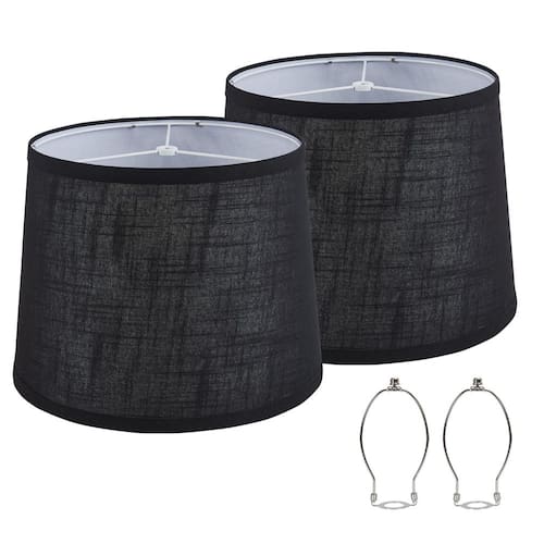 Conjunto de 2 abajures pretos de tecido, abajures de tecido para luminárias de mesa, abajures médios de 33 cm superior x 28 cm inferior x 25,4 cm de altura, suporte de harpa de abajur incluído - ?Material premium?Este abajur foi feito de tecido de linho natural, decoração fotográfica mais natural. Substituições de sombra premium são perfeitas para candeeiros de mesa, lustres, luzes de chão, luminárias de parede. - Conjunto médio de 2 abajures: diâmetro superior de 28 cm, diâmetro inferior de 28 cm, 18 cm de altura. Nossos abajures feitos à mão em linho natural de tecido com 2 unidades são adequados para a maioria das luminárias. Dicas: antes de comprar, observe a tonalidade do modo Aranha. Sua luz deve ter um adaptador de harpa ou grampo de lâmpada para usar. - ?Dimensão apropriada?Diâmetro superior: 33 cm, diâmetro inferior: 28 cm, altura: 25,4 cm, tamanho médio adequado para a maioria dos candeeiros de mesa e lâmpadas de chão. Verifique o tamanho da persiana cuidadosamente para garantir que elas sejam adequadas para suas luminárias antes de comprar. - ?Fácil de instalar?Feito à mão por trabalhadores profissionais. Abajur parece mais confortável. Montagem automática necessária, pode levar cerca de 5 minutos. Por favor, não leve para casa, se você não pode aceitar a montagem automática. - ?Compra sem preocupações?Cada produto foi bem testado pelo fabricante para garantir um produto de alta qualidade antes de ser enviado. Se você tiver alguma dúvida sobre nossas lâmpadas, , forneceremos o serviço mais rápido e amigável dentro de 24 horas.