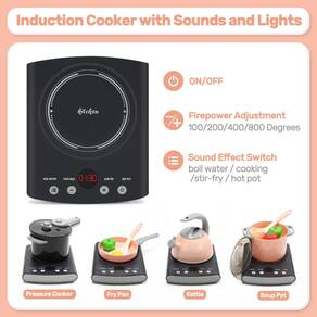 Conjunto de acessórios de cozinha CUTE STONE de 37 peças para brincar, conjuntos de brinquedos para cozinhar para crianças com utensílios de cozinha, panelas e frigideiras, fogão eletrônico de indução com som e luz, presente educacional para crianças pequenas, meninos e meninas — Conjunto completo de brinquedos de cozinha: 37 peças de brinquedos de cozinha incluem fogão de indução, panelas e frigideiras de brincar, chaleira, utensílios de cozinha de brinquedo, conjunto de facas, comida fingida e vegetais, também adicionamos alguns temperos como pimenta, açúcar refinado, sal e ketchup para adicionar mais diversão ao cozinhar finge brincar. - Sons e luzes realistas: fogão de indução de simulação com som e luz, 4 poderes de fogo podem ser ajustados, 4 modos de cozimento para você escolher (água fervida, arroz frito, refogado, panela quente), pode ser combinado com panelas e panelas, junte uma chaleira para adicionar uma experiência culinária fingida. - Material seguro e de alta qualidade: feito de material ABS durável e adequado para crianças, não tóxico e durável, cada peça de brinquedo de cozinha para crianças pequenas tem bordas lisas e cabe na mão da criança. - Brinquedos educativos divertidos para crianças: com o conjunto de cozinha infantil, a criança pode jogar um RPG com seus amigos ou pais, aprender a cozinhar e melhorar sua capacidade cognitiva e motora fina, criatividade e imaginação. É um ótimo brinquedo de cozinha para aumentar a interação entre pais e filhos. - Ótimo presente de cozinha para crianças: o conjunto de utensílios de cozinha é perfeito para um presente de aniversário, Natal ou Natal. Dê a seus filhos um presente que cria inúmeros momentos felizes.