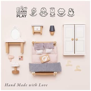 Adicione charme e elegância ao mundo em miniatura das suas crianças com o Quarto Principal Daisylane da Le Toy Van – onde imaginação e diversão se encontram!
