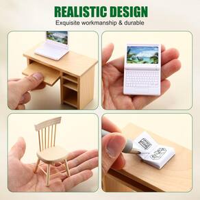 Características: Diversão interativa para a família: Nosso conjunto de móveis em miniatura para casa de bonecas oferece mais do que apenas diversão. É uma oportunidade para pais e crianças se unirem e decorarem a casa de bonecas, promovendo laços e criando momentos íntimos em família. Os melhores acessórios: Cada um dos nossos acessórios para casa de bonecas é elegantemente colorido. Suas persianas são cuidadosamente escolhidas para melhorar o apelo estético da coleção de móveis em miniatura da sua casa de bonecas. Decore sua mini mesa com a elegante luminária de mesa branca e amarela ou coloque nossos óculos pretos modernos no laptop para um toque detalhado. Especificações: Material: bétula principal, carvalho, plástico Cor: Óculos: preto Laptop: branco Lâmpada de mesa: branca, amarela Tamanho: Mesa: cerca de 4,1 x 1,9 x 2,8 polegadas/10,3 x 4,9 x 7 cm Cadeira: cerca de 1,6 x 1,6 x 3,5 polegadas/4 x 4 x 8,8 cm Livros: cerca de 0,6 x 0,8 x 0,2 polegadas/1,6 x 2,1 x 0,4 cm Óculos: cerca de 1,18 polegadas/3 cm Laptop: cerca de 1,7 x 1,4 polegadas/4,3 x 3,5 cm Lâmpada de mesa: cerca de 18 mm A embalagem inclui: 1 mesa de casa de bonecas. 1 cadeira. 5 livros. 1 óculo. 1 computador falso. 1 luminária de mesa. Observações: Medição manual, permita pequenos erros no tamanho. A cor pode existir uma pequena diferença devido a diferentes exibições de tela. Adequado para pessoas com mais de 6 anos de idade, e é recomendado usar sob a supervisão de adultos em caso de risco de asfixia. - Acessórios de casa de bonecas em miniatura: nossos mini móveis para casa de bonecas incluem 10 elementos extraordinários, uma mesa, cadeira, 5 livros, um computador, óculos e uma luminária de mesa vintage; com esses móveis de mini casa de boneca, você pode criar um estilo moderno, sala de estudo clássica de casa de boneca, trazendo infinitas horas de brincadeiras imersivas - Qualidade confiável: estes acessórios de casa de bonecas em miniatura são feitos de materiais de qualidade, que são fortes e não são fáceis de quebrar; Eles são cuidadosamente criados para mostrar excelente artesanato e robustez confiável - Cenário de estudo realista: nossos acessórios de casa de bonecas estabelecem um cenário de estudo vibrantemente detalhado para suas bonecas; da mesa e cadeiras em miniatura a livros, laptops e lâmpadas de mesa, o artesanato de nossos acessórios de casa de bonecas agarra os menores detalhes, todos replicados em escala de 1: 12, replica objetos da vida real de uma maneira incrível, proporcionando um toque realista à diversão da sua casa de bonecas - Ampla ampla variedade de usos: este conjunto clássico de acessórios de casa de bonecas de 10 peças é uma decoração fofa ou um acessório chique de casa de bonecas que inspirará você e seus meninos e meninas a construir a casa dos seus sonhos! Nossos acessórios de casa de bonecas são versáteis para se adequar a qualquer estilo de cômodo em sua casa de bonecas; seja na sala de estar, quarto, sala de jantar ou escritório, esses acessórios de mesa em miniatura infundirão uma atmosfera emocionante de sofisticação moderna em sua casa de bonecas - Presente ideal: este conjunto de mini móveis de casa de bonecas é um presente ideal para meninas, meninos, colegas de classe, vizinhos, filhas e amantes de bonecas de todas as idades; ofereça este conjunto como um presente atencioso para o Natal, festas de aniversário, Halloween, pode estimular a imaginação e a criatividade de meninos e meninas. Eles vão adorar este presente cheio de surpresas