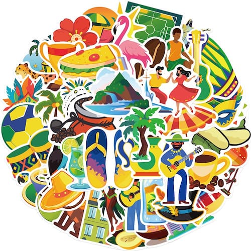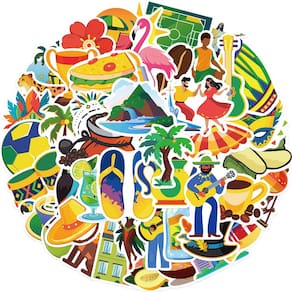 Material: papel e vinil Peso: 30-60 g Tamanho: 3-6 cm Quantidade: 50 unidades Conjunto de adesivos brasileiros de 50 peças — Inclui 50 designs exclusivos inspirados na cultura brasileira, com dançarinos de samba, futebol, máscaras de carnaval, café, frutas tropicais, praias e elementos musicais. Vinil impermeável durável — Feito de material de vinil de alta qualidade, à prova d'água e resistente ao desbotamento, perfeito para decoração interna e externa em superfícies lisas. Estética brilhante e tropical — Cores vibrantes e padrões divertidos criam uma atmosfera animada de carnaval, ótima para personalizar laptops, guitarras, skates e garrafas de água. Fácil de aplicar e remover — os adesivos pré-cortados são descascados e colados sem esforço, removíveis sem deixar resíduos pegajosos, o que os torna ideais para projetos de bricolage e uso criativo. Aplicativo para várias cenas — perfeito para álbuns de recortes, diários, malas, capas de telefone, capacetes, geladeiras e muito mais; adequado para adolescentes, estudantes e qualquer pessoa que adora viagens e vibrações tropicais.