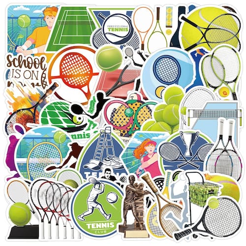 Material: papel e vinil Peso: 30-60 g Tamanho: 3-6 cm Quantidade: 50 unidades Adesivos de tênis PCS: inclui uma variedade de designs exclusivos com bolas de tênis, raquetes, silhuetas e citações divertidas. Perfeito para entusiastas do tênis. Duráveis e impermeáveis: feitos com material de vinil de alta qualidade, esses adesivos são à prova d'água, resistentes a arranhões e adequados para uso interno e externo. Perfeito para personalizar equipamentos: ideal para decorar garrafas de água, laptops, capas de telefone, malas, skates e muito mais, perfeito para atletas e fãs de esportes. Fácil de aplicar e remover: esses adesivos são simples de aplicar e remover sem deixar resíduos pegajosos, o que os torna ideais para decoração temporária. Designs divertidos e motivacionais: mostre seu amor pelo tênis com esses designs divertidos, coloridos e motivacionais que inspiram os atletas a continuarem jogando.