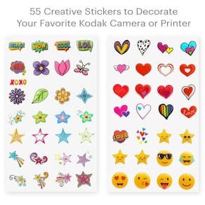 Conjunto de adesivos Zink 50+ Deluxe — Personalize e decore suas câmeras instantâneas Kodak, Lifeprint, Polaroid, HP, Canon e Fujifilm com formas divertidas, emojis fofos e designs modernos — PERSONALIZAÇÃO DIVERTIDA, RÁPIDA E FÁCIL — Um total de 57 adesivos diferentes em 2 folhas oferecem muitas opções para personalizar e decorar sua câmera instantânea, impressora, telefone e muito mais - IDENTIFICAÇÃO INSTANTÂNEA — Embelezar com facilidade e rapidez Decore seus dispositivos de uma forma única que se adapte ao seu estilo e os identifique de forma inequívoca como pertencentes a você e somente a você - TECNOLOGIA STICK-N-STAY — Os adesivos permanecem no lugar sem descascar; também podem ser removidos facilmente quando você quiser mudar as coisas; acabamento durável e brilhante que não quebra — uma variedade inovadora — Expresse-se com corações coloridos, estrelas brilhantes, emojis populares, designs bacanas e mensagens divertidas; mostre e conte sua história ou use um tema — Ótimo presente para sacolas — os adesivos oferecem diversão saudável e criativa e são prêmios, lembrancinhas e lembrancinhas ideais ou presentes a qualquer momento; envie dentro de um cartão para dar um toque especial