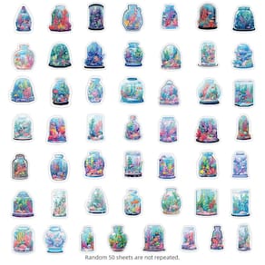Material: papel e vinil Peso: 30-60 g Tamanho: 3-6 cm Quantidade: 100 unidades Desenhos exclusivos de potes de vidro: 50 adesivos com belas paisagens desenhadas à mão, cenas da natureza e céu estrelado capturados em potes de vidro para um toque extravagante. Impermeáveis e duráveis: feitos de vinil de alta qualidade, esses adesivos são à prova d'água e resistentes ao desbotamento, garantindo uma decoração duradoura. Perfeito para projetos de bricolage: ideal para decorar laptops, álbuns de recortes, capas de telefone, cadernos, garrafas de água e muito mais. Fácil de aplicar: o design peel-and-stick simplifica a aplicação desses decalques de vinil em superfícies lisas sem deixar resíduos. Arte inspirada na natureza: um conjunto divertido para os amantes da natureza e para aqueles que apreciam designs criativos e extravagantes que adicionam charme aos itens pessoais.