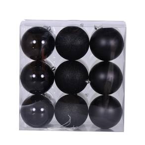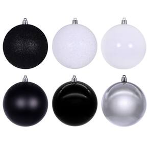 Conjunto Vickerman de adornos de 4" en colores negro, blanco y plata, 18 unidades por caja. - Variedad de acabados mate, brillante y con glitter - Incluye hilos para colgar - Contiene 18 adornos surtidos por caja