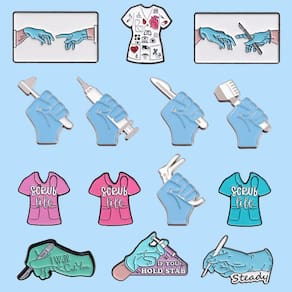 Material: liga Tamanho: 1,9-3,2 x 1,8-3 cm Peso: 70 g Quantidade: você receberá todas as peças em quantidade igual à primeira foto principal ShowDesign — Apresenta broches esmaltados em forma de luvas azuis segurando ferramentas médicas, uniformes vitais e citações engraçadas, adicionando personalidade ao traje médico. Construção em liga — Feita de liga de alta qualidade com revestimento de esmalte liso, garantindo que cada alfinete da blusa seja robusto, leve e resistente ao desbotamento. Crachás de lapela — Adequados para esfoliantes, jalecos de laboratório, mochilas, chapéus ou cordões, o que os torna acessórios modernos para enfermeiros, médicos e estudantes. para profissionais médicos — Ótimos para profissionais de saúde que desejam mostrar orgulho, humor e identidade por meio de broches criativos em uniformes ou roupas casuais. E leve — Cada broche mede cerca de 1,9—3,2x1,8—3 cm, pesa cerca de 70 g, é fácil de prender, confortável de usar e portátil para uso diário.