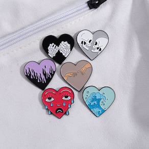 Material: liga. Tamanho: 3 x 2,8 cm Peso: 25 g Quantidade: você receberá todas as peças em quantidade igual à primeira foto principal. ShowUnique Heart Designs — O conjunto inclui 6 broches criativos em forma de coração com esqueleto, rosto chorando, ondas do mar, chama roxa, gestos artísticos com as mãos e padrões de casais de caveiras. Material de liga durável — Feito de liga de qualidade com revestimento de esmalte liso, resistente ao desbotamento e projetado para uso duradouro. Tamanho e peso perfeitos — Cada alfinete mede 3 x 2,8 cm, leve e resistente, pesando 25 g, facilitando o uso sem danificar os tecidos. Estilo versátil — funciona como alfinetes de blusa, broche de lapela ou crachá; ideal para jaquetas jeans, mochilas, chapéus e roupas do dia a dia para mostrar um estilo alternativo e artístico. Ótimo para ocasiões — Adequado para shows, Halloween, festas temáticas, cosplay ou acessórios de moda diários para quem adora designs criativos e expressivos.