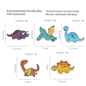 Material: liga Tamanho: 2,7 x 2 cm Peso: 17 g Quantidade: você receberá todas as peças em quantidade igual à primeira foto principal. ShowAdorable Dinosaur Set — Inclui dinossauros em estilo de desenho animado, como tricerátopo, pterossauro, estegossauro e dinossauros de pescoço comprido com divertidas cores de esmalte. Material de liga durável — Feito de liga de qualidade com revestimento de esmalte, garantindo superfície lisa, cores brilhantes e desgaste duradouro. Tamanho perfeito e leve — Cada crachá mede cerca de 2,7 x 2 cm e pesa 17 g, é compacto e fácil de usar em roupas, bolsas ou chapéus. Uso versátil — Funciona como alfinetes de blusa, broche de lapela ou crachá decorativo para jaquetas, mochilas, uniformes escolares, fantasias de cosplay ou roupas casuais. Colecionável e divertido — O design exclusivo com tema de dinossauro torna este conjunto de broches um acessório divertido, colecionável e estiloso para crianças, estudantes e amantes de dinossauros.