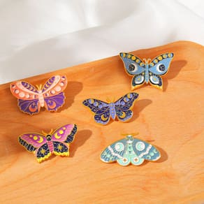 Material: Liga Tamanho: cm Peso: g Quantidade: você receberá todas as peças em quantidade igual à primeira foto principal ShowButterfly Style — Apresenta um conjunto de broches de borboleta esmaltados com desenhos celestiais, combinando motivos de lua e estrela para uma aparência única e elegante. Alloy Craft — Feito de liga durável com superfície lisa de esmalte, oferecendo brilho duradouro e cores vibrantes. Uso de acessórios — Perfeitos como alfinetes de blusa, crachás de lapela ou broches decorativos para casacos, camisas, cachecóis e vestidos. E leve — Cada crachá inclui um fecho resistente para fixação segura e é leve para uso diário confortável. Para estilo moderno — Adequado para mulheres que gostam de acessórios exclusivos, perfeito para roupas casuais, looks de escritório, festas e ocasiões sazonais.