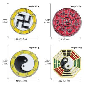 Material: liga Tamanho: 2,5 x 2,5 cm Peso: 25 g Quantidade: você receberá todas as peças em quantidade igual à primeira foto principal ShowCultural Symbol Design Conjunto de 4 broches de esmalte com símbolos Yin Yang, Tai Chi, Bagua e tradicionais chineses, destacando a filosofia oriental clássica em acessórios de moda. Material de liga durável Feitos de liga premium com acabamento em esmalte colorido, esses alfinetes de blusa são fortes, leves e resistentes ao desbotamento para uso prolongado. Estilo versátil: perfeito como alfinetes de lapela ou crachás para jaquetas, mochilas, camisas ou chapéus, adicionando um elemento cultural único às roupas do dia a dia ou temáticas. Moda unissex Projetados para homens e mulheres, esses broches são ideais para colecionadores, entusiastas culturais e aqueles que apreciam o simbolismo tradicional. Seguros e fáceis de usar Equipados com fechos confiáveis, esses crachás se fixam com firmeza e podem ser removidos facilmente sem danificar os tecidos.
