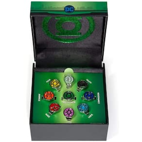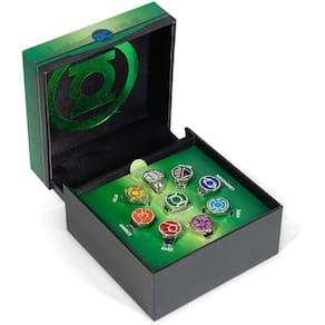 - UMA COLEÇÃO DE PODER VERDADEIRO: Este conjunto de anéis de poder de nove peças inclui verde força de vontade também usada pelo Lanterna Verde), vermelho (raiva), laranja (avareza), amarelo (medo), azul (esperança), índigo (compaixão), violeta (amor), branco (vida) e preto (morte).
