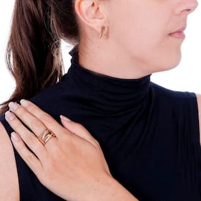 Conjunto de anel e brincos banhado a ouro e com aplicação de microzircônias cristais, luxuoso que te deixa em destaque em qualquer situação.
