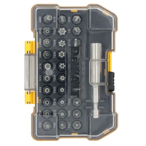 DEWALT DWAX200 Conjunto de aparafusamento de segurança, 31 peças - O produto é um conjunto de brocas seguras STD de 31 peças - Fácil de usar - O produto é fabricado na China - Bits de segurança para parafusos invioláveis - Clipe de cinto ajustável - 30 bits, mais 1 suporte de ponta