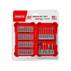 Kit completo de 45 peças — Apresenta uma variedade abrangente de brocas Phillips, quadradas, Torx, fixadores de porcas e um porta-brocas magnético perfeito para qualquer tarefa de fixação em madeira, metal ou plástico.