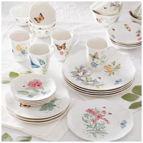 A Lenox é uma marca com mais de 130 anos de história, dedicada a transformar os momentos cotidianos em ocasiões especiais. Comprometida com qualidade, arte e beleza, cada peça é projetada para ser versátil e atemporal. O conjunto de louça Butterfly Meadow apresenta borboletas, libélulas e abelhas zumbindo ao redor de flores vibrantes, em porcelana cerâmica branca durável com bordas elegantes e recortadas.