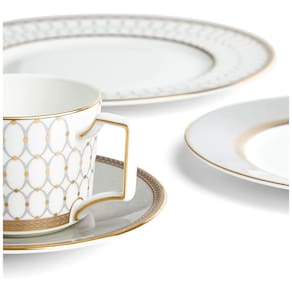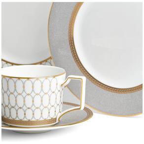 Parte da renomada coleção Renaissance Grey da Wedgwood, este conjunto pode ser combinado com outras peças da linha, permitindo que você crie uma mesa única e personalizada. A porcelana fina de osso confere não apenas uma resistência superior, mas também um brilho refinado, enquanto as faixas douradas adicionam um toque de luxo que eleva qualquer refeição.