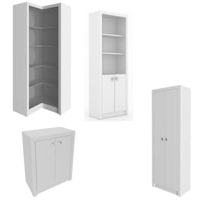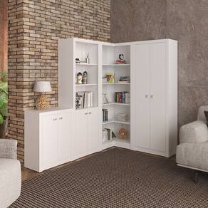 Características Armário de Canto: 4 Prateleira Acabamento portas e prateleiras BP Acabamento Finish Foil Dobradiça metálica Escala de brilho semi-fosco Estrutura em MDP 15 mm Peso máximo por prateleira 12kg Sistema de montagem Minifix e parafusos