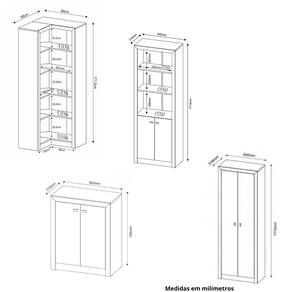 Dimensões Armário1: Altura: 171,5 cm Largura: 60 cm Profundidade: 31,5 cm