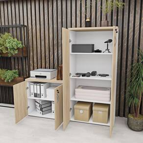 Juntos, construímos a sua satisfação! Acabamento da Porta: Finish Foil Acabamento da Prateleira: Finish Foil Ambiente Principal: Escritório Armário Suspenso: Não codigo_ean: 7900288069207 Complexidade da Montagem: Baixa: pode ser montado por uma pessoa sozinha Cor: Carvalho / Branco Cor do Produto: Carvalho / Branco Escala de Brilho: Fosco Escala de Brilho da Porta: Fosco Escala de Brilho da Prateleira: Fosco Espessura do Tampo: 30 mm Formato do Armário: Retangular Itens Inclusos: 1 Conjunto de Armários + 1 Kit de Montagem Manual de Especificação Técnica: https://cdn2.madeiramadeira.com.br/atributo/netmobil/2692026-5256-17397948327098.pdf Manual de Montagem e Instalação: https://cdn2.madeiramadeira.com.br/atributo/netmobil/2692025-5256-17397948289899.pdf Marca: Netmobil Material da Porta: MDP Material da Prateleira: MDP Material Principal: MDP Necessita Montagem: Sim Orientação do Armário: Vertical Origem do Produto: Nacional Peso: 78,2 kg Peso Máximo por Prateleira: 15 kg Possui Espelho: Não Possui Mesa Retrátil: Não Possui Pés: Não Possui Portas: 04 Possui Prateleiras: 04 Quantidade de Armários: 2 Recomendações de Uso, Manutenção e Limpeza: Recomendamos que o móvel não seja exposto a excesso de água ou produtos de limpeza agressivos. A limpeza pode ser feita com um pano de flanela levemente umedecido em álcool. Sapatas Niveladoras: Sim Sistema de Montagem: Necessita Montagem Suporta Até (kg): 40 kg Tamanho do Armário: Alto (Acima de 150cm) Tipo de Armário: Totalmente Fechado Tipo de Dobradiça/Corrediça da Porta: Metálica Tipo de Puxador da Porta: Externo