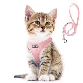 · O arnês é fácil de usar. Basta colar o fecho aderente, apertar a fivela e conectar a coleira para cachorro, então você pode tirar seu animal de estimação e brincar livremente.
