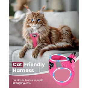 Arnês para gatos e coleira para gatos, conjunto de coleira e arnês para gatos, arnês para gatos, à prova de escape, coleiras e arreios para gatos para caminhar, arnês grande para gatos - Dicas para arreios para gatos: agora estamos atualizando nosso peitoral para gatos com mais opções de tamanho e cor! Meça o peito do seu gato e escolha o tamanho adequado, consulte a tabela de tamanhos antes de comprar nosso conjunto de arnês e coleira para gatos, pode haver algumas diferenças entre diferentes raças de gatos. Este peitoral também é adequado para cães pequenos. Meça o peito do seu cão antes de comprar este arnês e coleira à prova de fuga - Arnês para gatos à prova de escape: nosso arnês para gatos tem um fecho aderente forte e pegajoso, para que possa envolver os gatos firmemente a 360 graus. Juntamente com a teia grossa e firme, que não é fácil de quebrar, a proteção dupla dificulta a fuga dos gatos. Coleira de 1,5 m de distância suficiente para permitir que os gatos se movam livremente e brinquem na grama - Ultraleve e confortável: este peitoral e coleira para gatos é feito de tecido de malha respirável, pesa apenas 42,5 g, muito leve e confortável de usar. O gato não precisa suportar peso. Com borda acolchoada macia, o gato pode usar este peitoral o dia todo. Conjunto de coleira e arnês para gatos perfeito para gatos/cães enquanto caminha e trekking durante todo o ano - Fácil de usar e seguro à noite: ao contrário de outras marcas de arreios que são problemáticos de usar, seu gato pode colocar um arnês de caminhada para gatos em apenas um passo. Muito fácil de usar e conveniente de tirar. Além disso, o design de tira reflexiva deste peitoral grande para gatos permite que seu gato caminhe com segurança à noite - Combinação clássica – Este peitoral e coleira para gatos apresenta um design de estilo de camiseta de cor sólida com cores brilhantes e vibrantes, o que o torna um presente exclusivo para filhotes/gatinhos