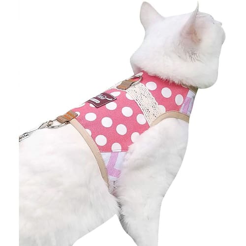 Conjunto de arnês e coleira para gatos YIZHI MIAOW ajustáveis de bolinhas