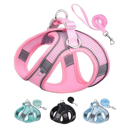 -?O design embutido é fácil de colocar e tirar?O arnês sem puxar para cães é fácil de usar. O cinto de colete é fácil de usar e tirar do filhote em segundos. Arnês para cães pequenos, arnês para cães médios.
