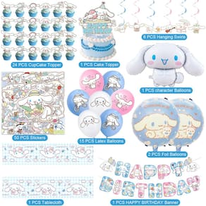 Cinnamoroll Decorações de aniversário, conjunto de 101 peças de artigos de festa inclui faixa, balões, adesivos, redemoinhos pendurados, topos de cupcake de bolo, toalha de mesa para crianças festa temática Cinnamoroll - ?O pacote inclui? Este kit de decoração de festa Cinnamoroll inclui 1 faixa de feliz aniversário, 1 toalha de mesa, 1 enfeite de bolo, 3 balões de alumínio, 6 espirais pendurados, 24 peças de topos de cupcake, 15 balões de látex (3 estilo), 50 adesivos. Tem tudo o que você precisa para uma festa de aniversário temática Cinnamoroll. - ?Alta qualidade? Todas as nossas decorações de aniversário Cinnamoroll são feitas de materiais de alta qualidade, que são seguros e não tóxicos. Os balões são feitos com látex natural, não tóxicos. Todos os balões foram rigorosamente testados e selecionados manualmente. Extra espesso, ao contrário dos balões comuns, a cor é mais cheia e não explosiva, eles são seguros para serem utilizados por crianças. - ?Design exclusivo? A impressão vívida e as cores vibrantes do nosso conjunto de suprimentos de festa Cinnamoroll criarão a atmosfera mais comemorativa para você e seus convidados. Com seu design elegante e personagens fofos, certamente será um sucesso entre crianças e adultos! - ?Ampla aplicação? Nosso kit de decorações de aniversário Cinnamoroll é adequado para a maioria dos eventos, como festas temáticas Cinnamoroll, jantares, atividades ao ar livre, pode criar uma atmosfera agradável e ativa para essas cenas. Se você vai dar uma festa Cinnamoroll, o kit de decoração é uma decoração fantástica. - ?Satisfação? Se você não estiver satisfeito com nossos produtos, clique no botão "contato do vendedor" em sua conta Amazon para nos enviar um e-mail, ficaremos satisfeito por meio de troca ou reembolso o mais rápido possível.