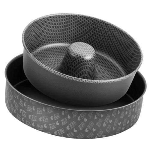 As duas peças são produzidas em alumínio e possuem revestimento antiaderente que ajuda os alimentos a não grudarem e na hora de desenformar aquele bolo fofinho fica mais fácil.