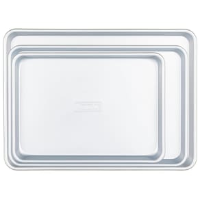 Viking Conjunto de assadeiras antiaderentes de 3 peças, bandejas de biscoito de aço aluminizado, seguro para forno, 33, 38 e 45 cm, prata