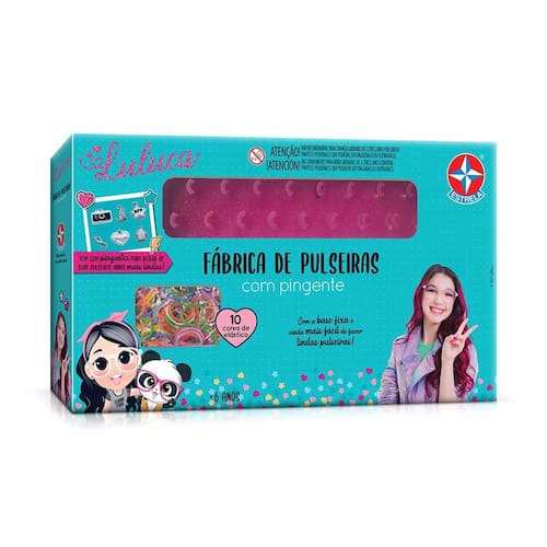 Conjunto de Atividades - Luluca - Fábrica de Pulseiras com Pingente - Estrela: a Youtuber Luluca com toda sua criatividade e imaginação vai criar junto com você diferentes modelos de pulseiras de elásticos coloridos com a fábrica de pulseiras com pingente Luluca. São 600 elásticos com mais de 10 cores para criar, abusar e ficar super estilosa, assim como a Luluca. Com a base fixa é ainda mais fácil fazer pulseiras incríveis, além dos 24 fechos, 1 gancho, 15 pingentes, 15 argolas e o manual de instruções. Crie acessórios super fashion. A fábrica de pulseiras com pingente Luluca é indicada para crianças a partir de 6 anos. INFORMAÇÕES: • Produto: Fábrica de Pulseiras com Pingente • Marca: Estrela Brinquedos • Coleção: Youtuber Luluca • Funções: Diversão, entretenimento e aprendizado • Tipo: Conjunto de pulseiras e joias infantil • Conteúdo: 1 base, 600 elásticos, 15 pingentes, 15 argolas, 24 fechos, 1 gancho e 1 manual de instruções • Recomendação: para crianças a partir de 06 anos de idade ESPECIFICAÇÕES: • Referência: 1001902200026 • Código de Barras: 7896027558838 • Embalagem (C x A x L): 31 x 18 x 5 cm • Embalagem (Peso): 260 g • Material / Composição: Plástico e borracha • Registro: CE-BRI/IQB - 005915/2020 - OCP 0006 • Certificado: Órgãos Autorizados - OCP´S (Organismos de Certificação de Produtos) BENEFÍCIOS: - Eleva a autoestima - Estimula o raciocínio - Exercita o imaginário - Desenvolve a criatividade - Desenvolve percepção visual - Desperta a atenção e curiosidade - Desenvolvimento neuropsicológico - Estimula habilidades motoras básicas - Incentiva a comunicação e linguagem - Desenvolve aspectos emocionais e afetivos AVISO: - As imagens são meramente ilustrativas - Os tamanhos e medidas são aproximados - As cores e estampas dos produtos podem ter variações - As informações são de responsabilidade do fabricante ou fornecedor