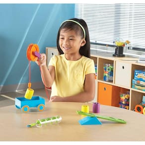 Descubra maravilhas da Engenharia através da exploração científica com ferramentas envolventes e atividades práticas! Introduza e explore todas as 6 máquinas simples, fazendo descobertas incríveis, projetando soluções para problemas do mundo real e conduzindo investigações. Inclui uma placa de alavanca, cunha, roldana com corda e gancho, carroça com rodas removíveis, parafuso Arquimedes, 4 pesos de barril, 10 Cartões de Atividade de dupla lateral e um guia de atividade abrangente. Maior peça (carrinho) mede 5"L x 31/2"W.