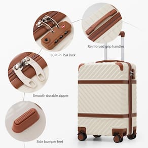 Entregue-se à flexibilidade de viagem incomparável com nosso conjunto de bagagem chique, oferecendo opções para se adequar a todas as viagens. Escolha entre um conjunto abrangente de seis peças com vários tamanhos de bagagem, uma bolsa de fim de semana e uma bolsa de higiene pessoal, ou opte pela praticidade de um conjunto de três peças com bagagem de mão, uma bolsa esportiva (ou mochila) e uma bolsa de higiene pessoal. Feita de policarbonato durável, a bagagem garante resiliência contra os rigores das viagens modernas, enquanto a bolsa esportiva de poliéster premium possui recursos como um compartimento para sapatos, bolso molhado/seco e bolsos frontais e laterais convenientes. Acompanhadas por uma bolsa de higiene pessoal espaçosa, essas peças são projetadas para estilo e funcionalidade. Dentro da bagagem, encontre compartimentos divididos, bolsos com zíper e alças ajustáveis para manter os pertences organizados e seguros, com travas integradas aprovadas pela TSA para maior tranquilidade durante as inspeções no aeroporto. Deslize sem esforço através de terminais e corredores de hotel com rodas giratórias ultra-suaves de 360 graus e uma alça telescópica projetada para conforto e adaptabilidade. Inspirando-se na era de ouro das viagens, o conjunto combina estética de mala vintage com um toque contemporâneo, com ferragens personalizadas e detalhes luxuosos em couro vegano para uma experiência de viagem verdadeiramente distinta e elegante. - Entregue-se à flexibilidade de viagem incomparável com nosso conjunto de bagagem chique. O conjunto de seis peças oferece uma bagagem de 40 cm, bagagem de 50 cm, uma bagagem de 61 cm, uma bagagem de 71 cm, uma bolsa de viagem de fim de semana e uma bolsa de higiene pessoal. Os conjuntos de três peças oferecem duas opções. A opção A inclui uma bagagem de 50 cm, uma bolsa esportiva de viagem e uma bolsa de higiene pessoal. A opção B inclui uma bagagem de 50 cm, uma mochila e uma bolsa de higiene. - Feita com uma capa dura de policarbonato durável, a bagagem é projetada para suportar os rigores das viagens modernas. Feita de poliéster premium, a bolsa esportiva vem com um compartimento exclusivo para sapatos, um bolso molhado/seco, manga traseira para carrinho, alça de ombro removível, bolso frontal conveniente e bolso lateral. E a bolsa de higiene combinando guarda muitos dos seus itens essenciais de cuidados pessoais. A mochila de viagem possui vários bolsos para organização organizada. - O interior da bagagem é tão funcional quanto elegante. Com compartimentos divididos, bolsos com zíper e alças ajustáveis, mantém seus itens organizados e seguros durante o transporte. As travas integradas aprovadas pela TSA garantem que seus pertences estejam seguros, permitindo inspeções contínuas pela segurança do aeroporto. - Equipada com rodas giratórias ultra suaves de 360 graus, esta bagagem desliza ao seu lado com o mínimo de esforço, seja correndo pelos terminais do aeroporto ou navegando pelos corredores estreitos de hotel. A alça telescópica oferece uma aderência confortável, adaptando-se a viajantes de todas as alturas. - Inspirando-se na era de ouro das viagens, o conjunto apresenta uma silhueta de mala vintage única com um toque contemporâneo. Seu visual distinto é complementado por ferragens personalizadas e detalhes luxuosos de couro vegano, garantindo que você viaje com estilo único.