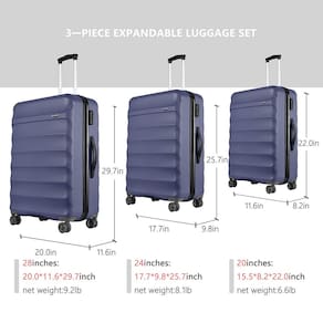 - ?Atende viagens longas e curtas?Conjunto de malas de 3 peças para acomodar todas as suas necessidades de viagem. Os seguintes tamanhos de mala estão incluídos (grande capacidade ampliada e espessa): 50,8 cm (peso: 3,3 kg), 60,9 cm (peso: 4,2 kg) e 71,1 cm (peso: 5,0 kg). Capacidade de peso: 50,8 cm: 15,0 kg, 60,9 cm: 20 kg , 71 cm: 24 cm: 24 cm: 9 kg