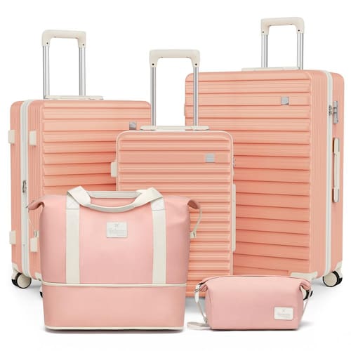 - Conjuntos de bagagem expansível de 5 peças: o conjunto de bagagem inclui bagagem despachada grande de 71 cm, bagagem despachada média de 61 cm, bagagem de mão de 51 cm, bolsa estendida e bolsa de maquiagem. A bagagem de 50 cm e 61 cm é expansível, oferecendo um espaço adicional de 25% para maximizar sua capacidade de embalagem