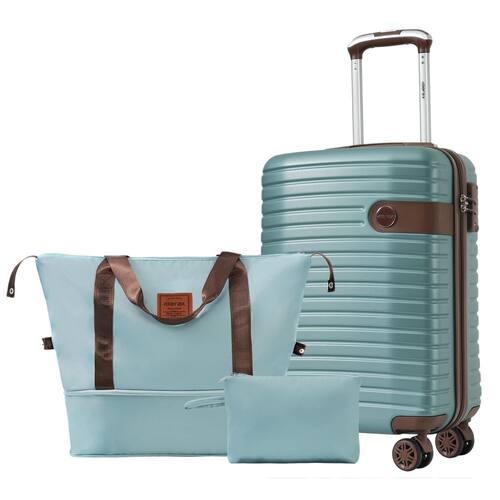 A Merax lança um conjunto de viagens moderno. Vem com uma bagagem de 20 polegadas, uma mala de viagem de fim de semana e uma bolsa de higiene. Feito de material rígido ABS de alta qualidade, é mais leve e tem forte resistência ao desgaste e resistência ao impacto. A bolsa Weekender pode ser expandida para conter mais itens. Bolsa de viagem perfeita, bolsa de ginástica.