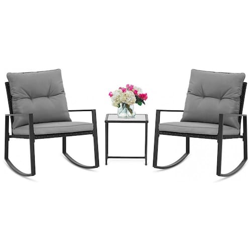 Os cadeiras de balanço ao ar livre da SUNCROWN são feitas com vime de alta qualidade e durabilidade para uso em todas as estações, com textura natural e ótima coloração. A estrutura sólida de aço com revestimento em pó garante resistência e estabilidade. O design de balanço oferece conforto excepcional, com parafusos ajustáveis na base para regular a amplitude do balanço, proporcionando uma sensação relaxante. As cadeiras espaçosas proporcionam amplo espaço para sentar confortavelmente, com pernas e apoios de braço projetados para oferecer suporte adicional. As almofadas melhoradas são compostas por camada de poliéster macio envolta em espuma grossa, garantindo um assento muito confortável. Montagem super fácil sem necessidade de ferramentas, concluída em apenas 20-25 minutos. Uma experiência de cliente incomparável.