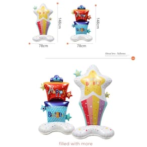 Design vibrante e divertido: este conjunto inclui uma grande caixa de presente e balões em forma de estrela com texto colorido de “Feliz Aniversário”, perfeitos para criar uma atmosfera alegre e festiva para comemorações de aniversário. Material de alumínio de alta qualidade: feitos de papel alumínio durável, esses balões são duradouros e projetados para suportar os rigores de qualquer festa, fornecendo decorações confiáveis e atraentes. Ideal para festas de aniversário: a caixa de presente exclusiva e os formatos de estrelas fazem desses balões um recurso de destaque para festas de aniversário, adicionando um toque divertido e divertido à decoração do seu evento. Fácil de inflar e configurar: esses grandes balões 3D são simples de inflar com ar e fáceis de configurar, tornando-os perfeitos para aprimorar rapidamente seu espaço para festas de aniversário ou eventos. Ótimos para oportunidades fotográficas: o design atraente torna esses balões perfeitos para cabines fotográficas, criando momentos memoráveis para os hóspedes com sua aparência colorida e divertida.
