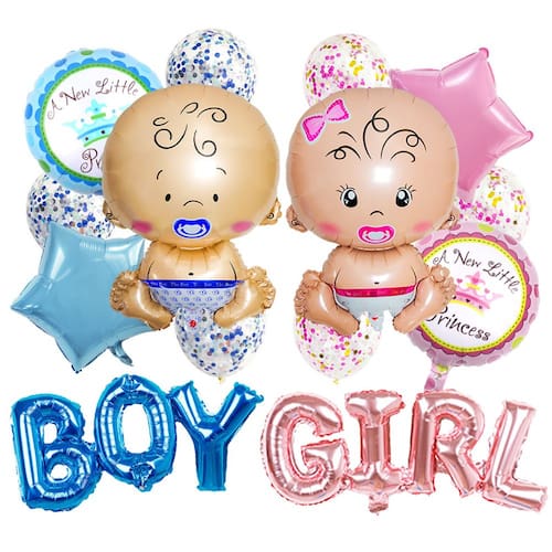 Conjunto completo de balões de chá de bebê: este conjunto de balões de alumínio de 5 peças inclui um balão de mamadeira para menino e menina, junto com balões de alumínio “MENINO” e “MENINA”, perfeitos para revelar o gênero ou para um chá de bebê. Material de folha de alumínio premium: feitos de papel alumínio durável, esses balões são projetados para manter sua forma e adicionar um toque divertido e festivo a qualquer chá de bebê ou celebração de revelação de gênero. Perfeito para festas de revelação de gênero e chá de bebê: celebre a chegada de um novo bebê com esses vibrantes balões rosa e azul que trazem emoção e alegria ao seu evento. Desenhos divertidos e extravagantes: com adoráveis designs de mamadeiras e letras grandes de “MENINO” e “MENINA”, esses balões dão um toque divertido e colorido à decoração de sua festa. Fácil de inflar e exibir: esses balões são simples de inflar com ar ou hélio, facilitando a decoração do espaço do evento em pouco tempo. Perfeito para celebrações internas e externas.