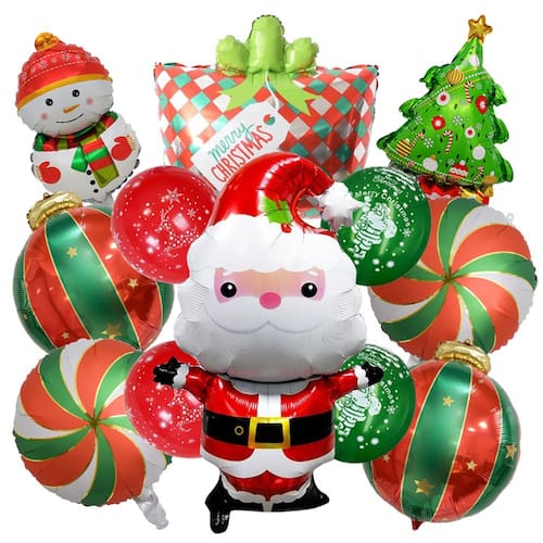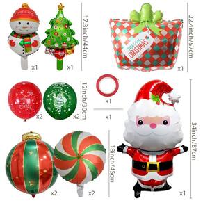 Conjunto completo de balões de Natal: este conjunto inclui Papai Noel, boneco de neve, árvore de Natal, pirulito e balões em forma de enfeite, perfeitos para decorar sua festa de Natal ou criar adereços fotográficos divertidos. Cores vibrantes de Natal: com cores tradicionais de Natal, como vermelho, verde, dourado e branco, esses balões adicionarão uma atmosfera festiva e alegre à sua celebração. Folha de alumínio durável e material de látex: feitos de papel alumínio e látex de alta qualidade, esses balões são projetados para durar e manter sua forma e cor durante todo o evento. Perfeitos para festas e fotos de Natal: seja para um jantar de Natal, festa de fim de ano ou sessão de fotos festiva, esses balões trarão alegria e criarão memórias duradouras para todas as idades. Fácil de inflar e configurar: os balões variam de 12 a 34 polegadas de tamanho e podem ser facilmente inflados com ar ou hélio, facilitando a decoração de seu evento natalino.