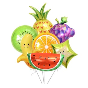 Design divertido e vibrante: este conjunto de balões apresenta adoráveis balões de alumínio com tema de frutas, incluindo banana, kiwi, abacaxi, melancia, laranja, uvas e estrela, perfeitos para adicionar um toque divertido a qualquer celebração. Material de alumínio de alta qualidade: feitos de papel alumínio premium, esses balões são duráveis, duradouros e resistentes a rasgos, garantindo que suas decorações de festa permaneçam infladas por mais tempo. Perfeito para várias ocasiões: ideal para aniversários, festas de verão, eventos com temas tropicais ou qualquer ocasião divertida que exija uma explosão de cores e um toque extravagante. Fácil de inflar: cada balão é fácil de inflar com hélio ou ar, proporcionando uma configuração descomplicada e criando uma atmosfera festiva em pouco tempo. Ótimo tamanho e leveza: os balões variam de 42 a 80 cm de tamanho, proporcionando uma tela atraente que certamente impressionará seus convidados, além de serem leves para facilitar o manuseio e a exibição.