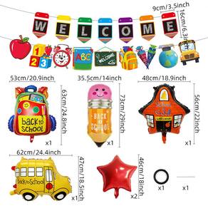 Conjunto completo de volta às aulas: este conjunto de balões de alumínio de 9 peças inclui uma variedade de balões com temas escolares, como ônibus escolar, mochila, lápis e faixas de “volta às aulas”, perfeitos para criar uma sala de aula festiva ou um ambiente de festa. Qualidade durável: feitos de papel alumínio de alta qualidade, esses balões são projetados para durar até a temporada escolar, oferecendo cores vibrantes e formas divertidas que não se esvaziam rapidamente. Design vibrante e divertido: com balões brilhantes e coloridos que exibem imagens divertidas relacionadas à escola, incluindo um ônibus escolar alegre, uma mochila sorridente e uma placa de “Bem-vindo” na sala de aula para uma atmosfera acolhedora e empolgante. Decoração versátil: ideal para festas de volta às aulas, celebrações do primeiro dia de aula, decorações de sala de aula ou qualquer evento que celebre o aprendizado, tornando-a uma experiência divertida para crianças. Configuração fácil: Encha e pendure os balões facilmente, com o banner de sala de aula e os balões incluídos, projetados para criar um cenário animado e alegre para fotos e momentos de festa.