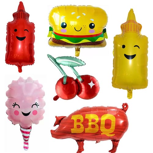 Balões divertidos com tema gastronômico: este conjunto de balões de alumínio de 8 peças inclui designs divertidos e vibrantes com temas gastronômicos, como hambúrguer, garrafa de ketchup, garrafa de mostarda, algodão doce, churrasco de porco e muito mais, perfeito para um churrasco ou festa de verão. Folha de alumínio durável: feitos com material de alumínio de alta qualidade, esses balões são resistentes e podem ser facilmente inflados com ar ou hélio, proporcionando diversão duradoura para seu evento. Perfeitos para churrascos ao ar livre: esses balões são ideais para churrascos ao ar livre, piqueniques ou celebrações de verão, adicionando um toque divertido e festivo à decoração de seu evento com tema gastronômico. Decorações atraentes: com designs brilhantes e divertidos, incluindo um porco para churrasco e alimentos coloridos, esses balões se destacarão e criarão uma atmosfera animada para seus convidados. Fácil de configurar: encha esses balões e organize-os ao redor do espaço da festa para uma configuração rápida e descomplicada. Eles transformarão instantaneamente seu evento em uma celebração deliciosa e festiva com tema gastronômico.